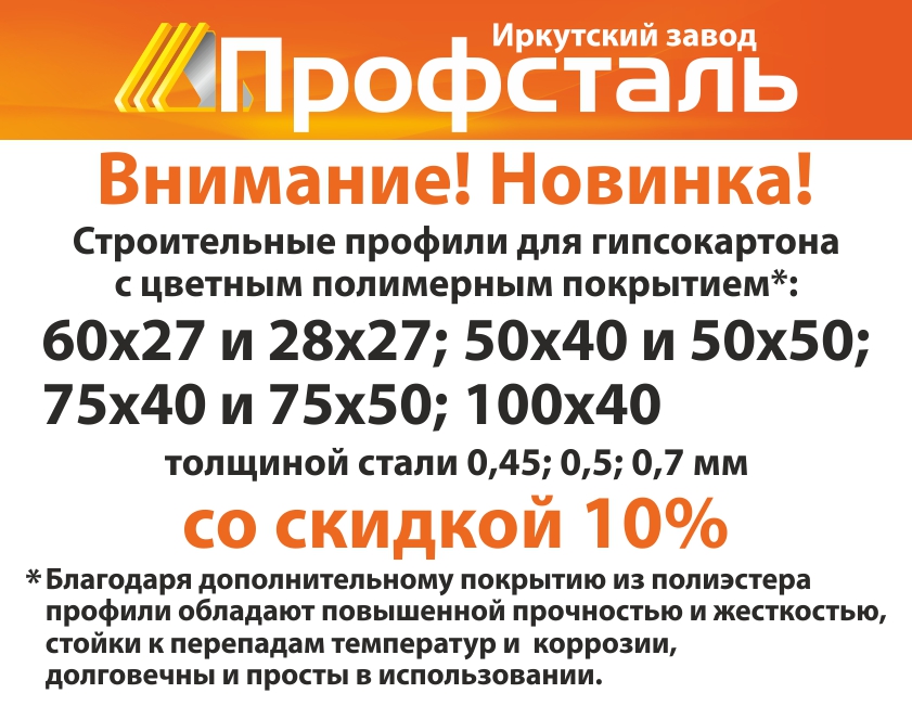 Новости Главная > О компании > Новости 18.12.2013 Новости: Новинка! Строительные профили для гипсокартона с цветным полимерным покрытием! Возврат к списку