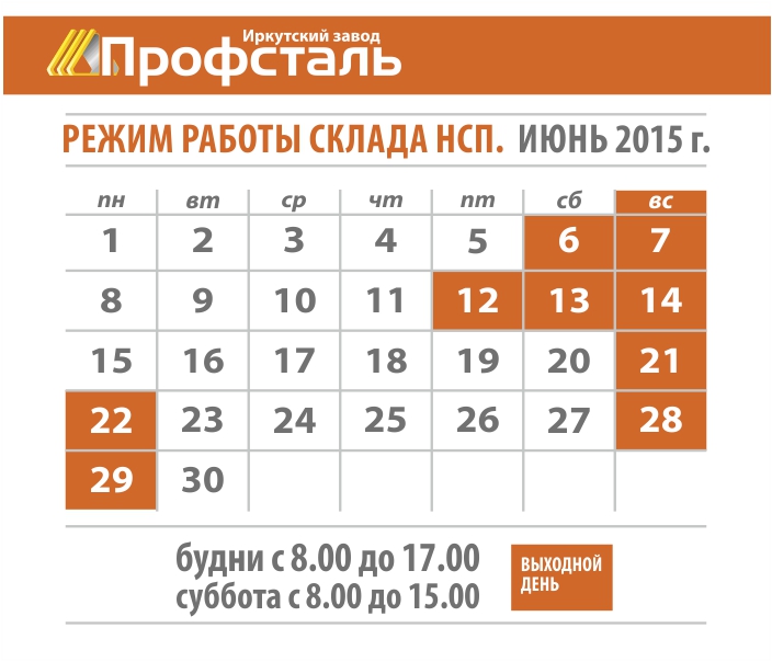 ВНИМАНИЕ!!! Склад НСП 9, 10 и 11 июня будет работать с обеда. Склад будет открыт с утра, продукцию Вы сможете выбрать и отложить, но выписать только после обеда.