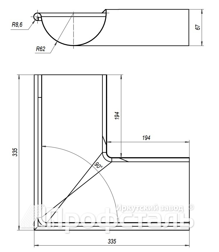 Устанавливается на наружных углах кровли для повторения контура по ее периметру, изменяет направление движения воды в желобе.